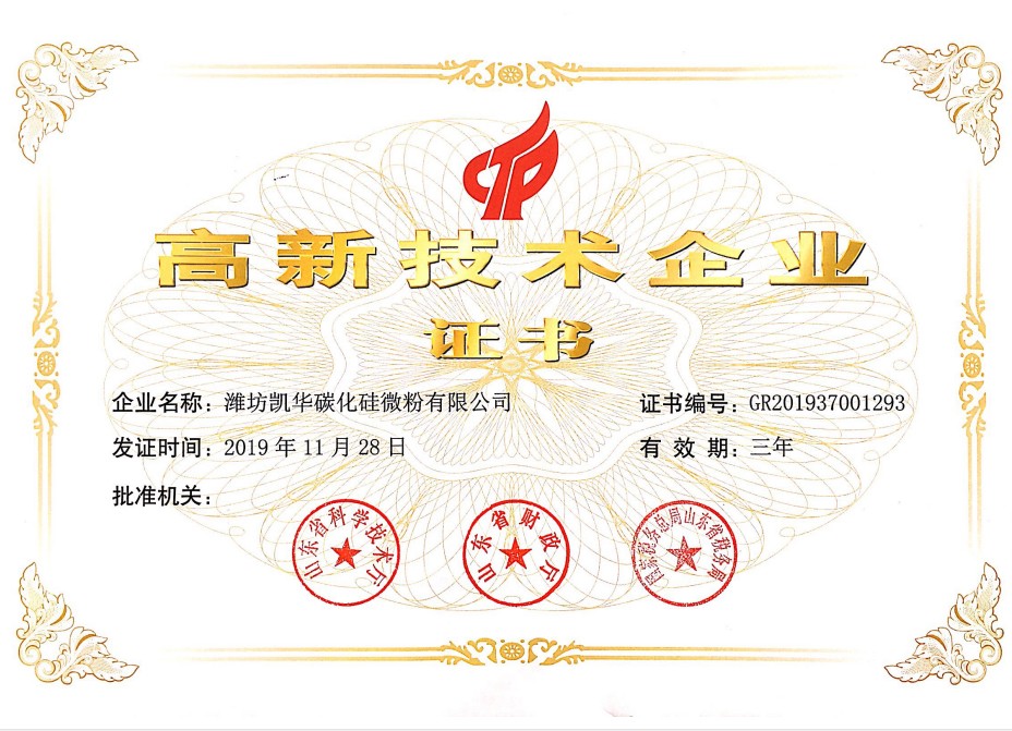 濰坊凱華碳化硅微粉有限公司成立于2002年,國家高新技術企業(yè),公司占地40畝,標準廠房19000平方,辦公樓、研發(fā)處2000平方,年生產能力3萬噸。一直從事陶瓷級微粉的生產銷售,所生產的超細碳化硅微粉具有純度高、粒形好、穩(wěn)定性強等特點,主要用于反應燒結、無壓燒結、硅碳棒新工藝、重結晶燒結、蜂窩陶瓷、機車制動裝置、研磨拋光、金屬防腐表面噴涂、納米隔熱保溫材料等領域。標準產品有:F240、F1200、W40、W28、W20、W14、W10、W7、W5、W3.5、 W2.5、W2、W1.5、W0.5、5S、D3E、100F、RS07、RS100及整形高密度系列綠碳化硅微粉......